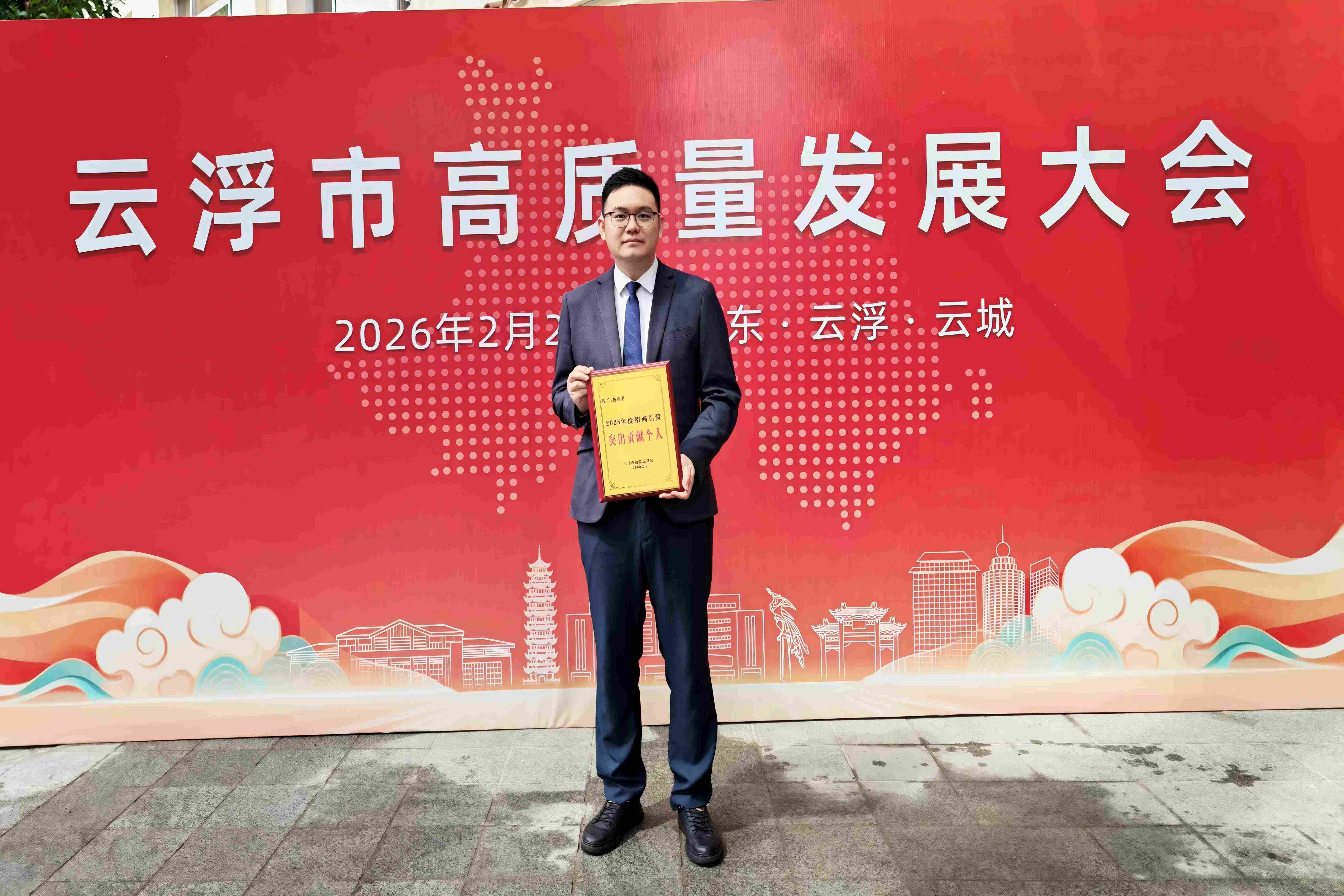28 2026-02InvestH2:协会动态|国际氢能投资协会执行会长杨冷羽荣获云浮市委市政府招商引资“突出贡献个人”称号2026年2月28日,国际氢能投资协会执行会长总杨冷羽凭借在推动地方产业升级、助力招商引资落地、服务区域经济发展中的突出成绩与责任担当,被授予2025年度招商引资“突出贡献个人”荣誉称号,并现场接受表彰