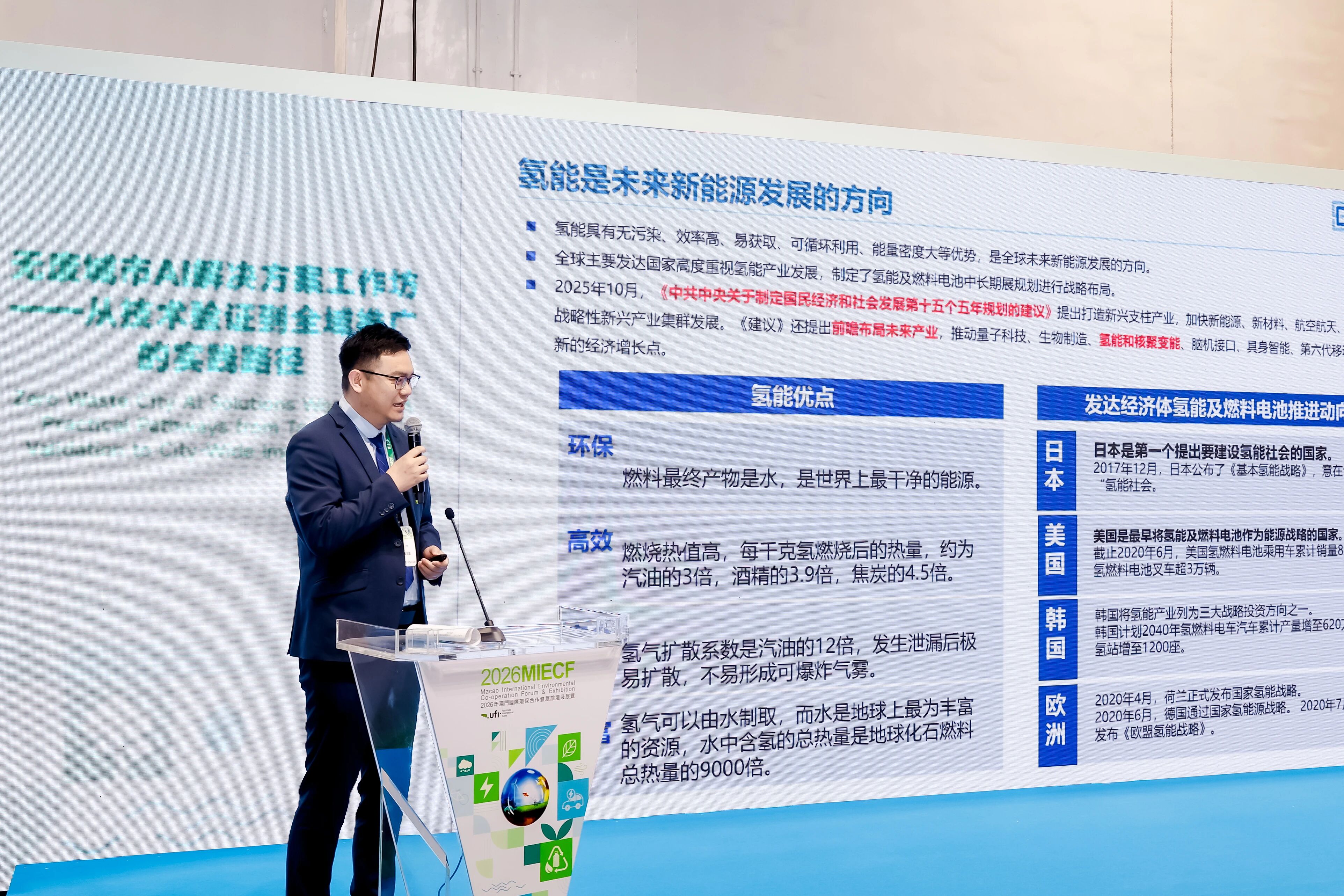 2026 澳门绿色环保展启幕,国际氢能投资协会杨冷羽分享会员天云氢创氢能源技术,助力低碳发展,搭建国际合作平台。